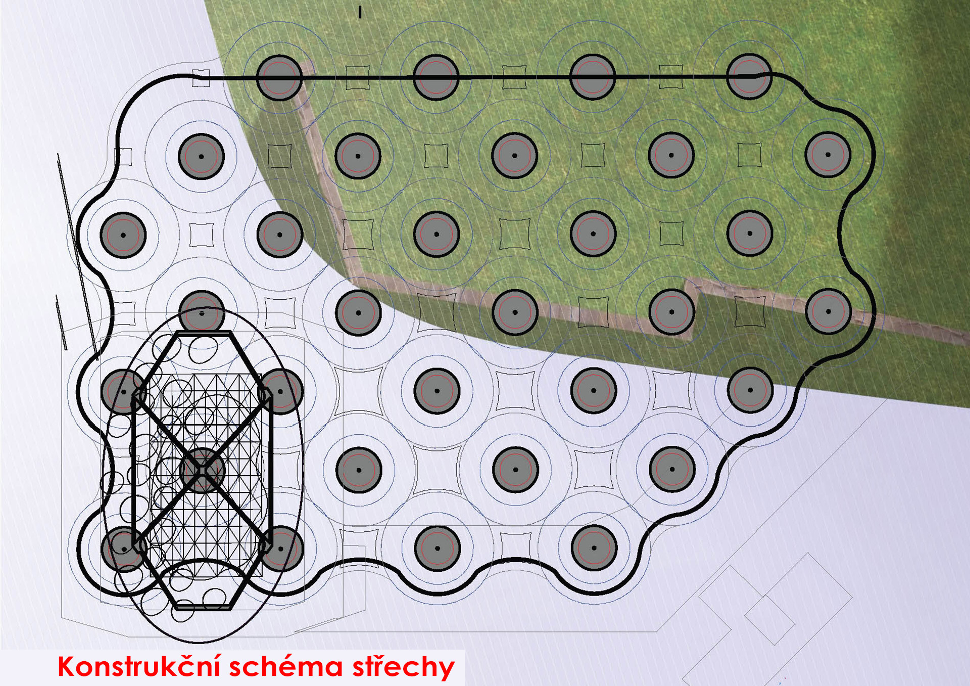 • vstup do „dechu džungle“ pod korunami stromů (klenuté sloupy)