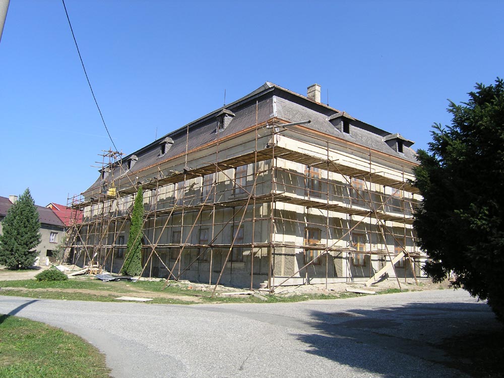 renovace fasád za použití tradičních technologií - kompletně vápenný sanační systém, vápenné nátěry, vzduchové odvětrávací dutiny (odvlhčení základového zdiva), restaurátorské práce (relikty původních omítek, restaurování původních vstupních vrat z roku 1750), spolupráce s restaurátorkou akad.mal Zlaticou Dobošovou (Praha)