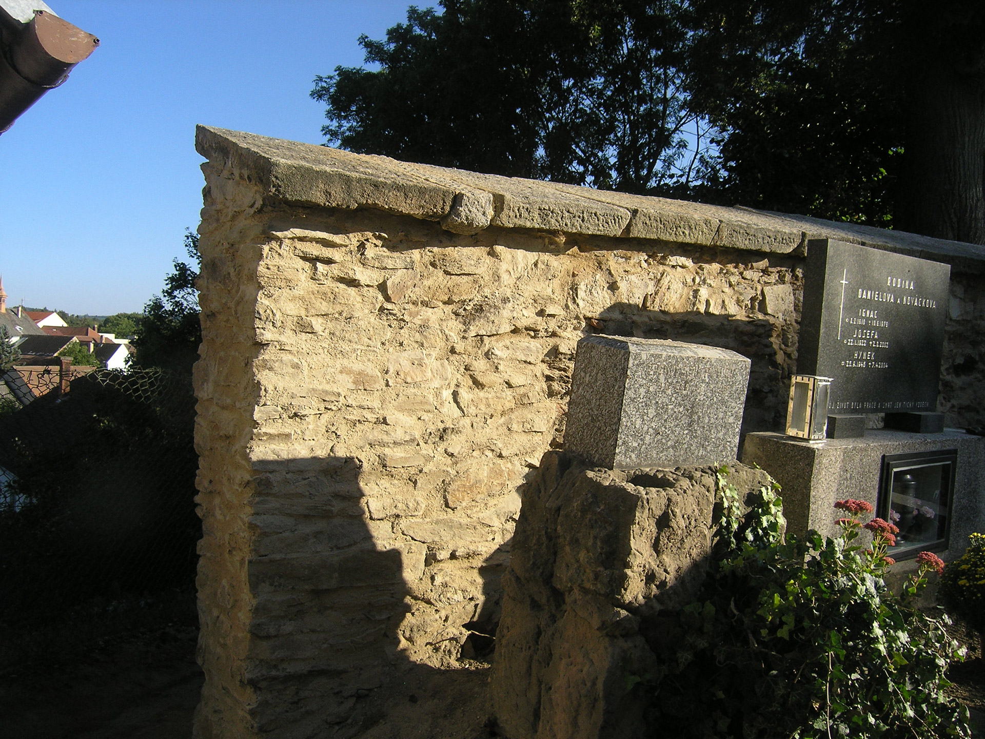 Kompletní renovace hřbitovní obvodové stěny – historické kamenné zdivo.