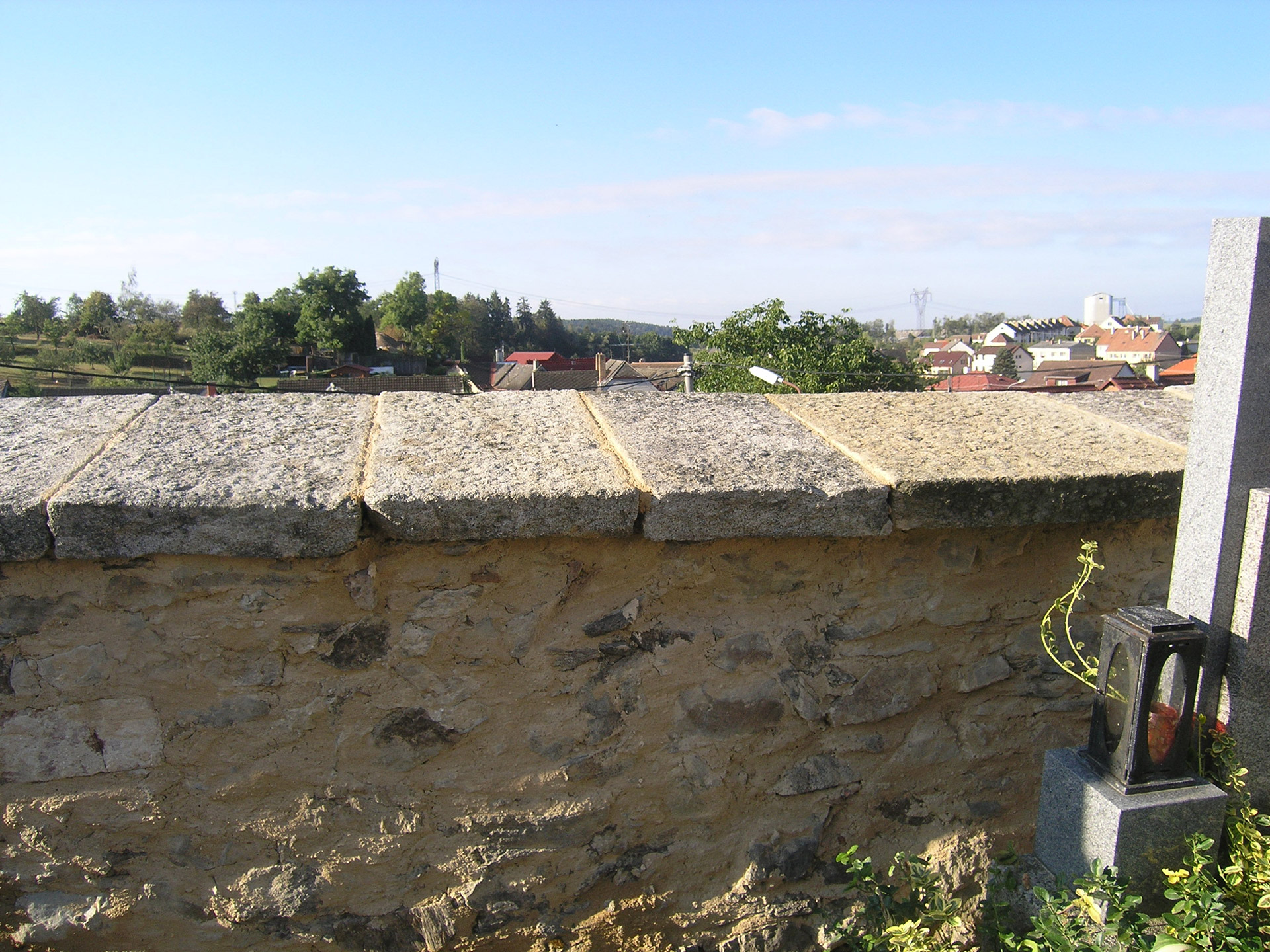 Kompletní renovace hřbitovní obvodové stěny – historické kamenné zdivo.